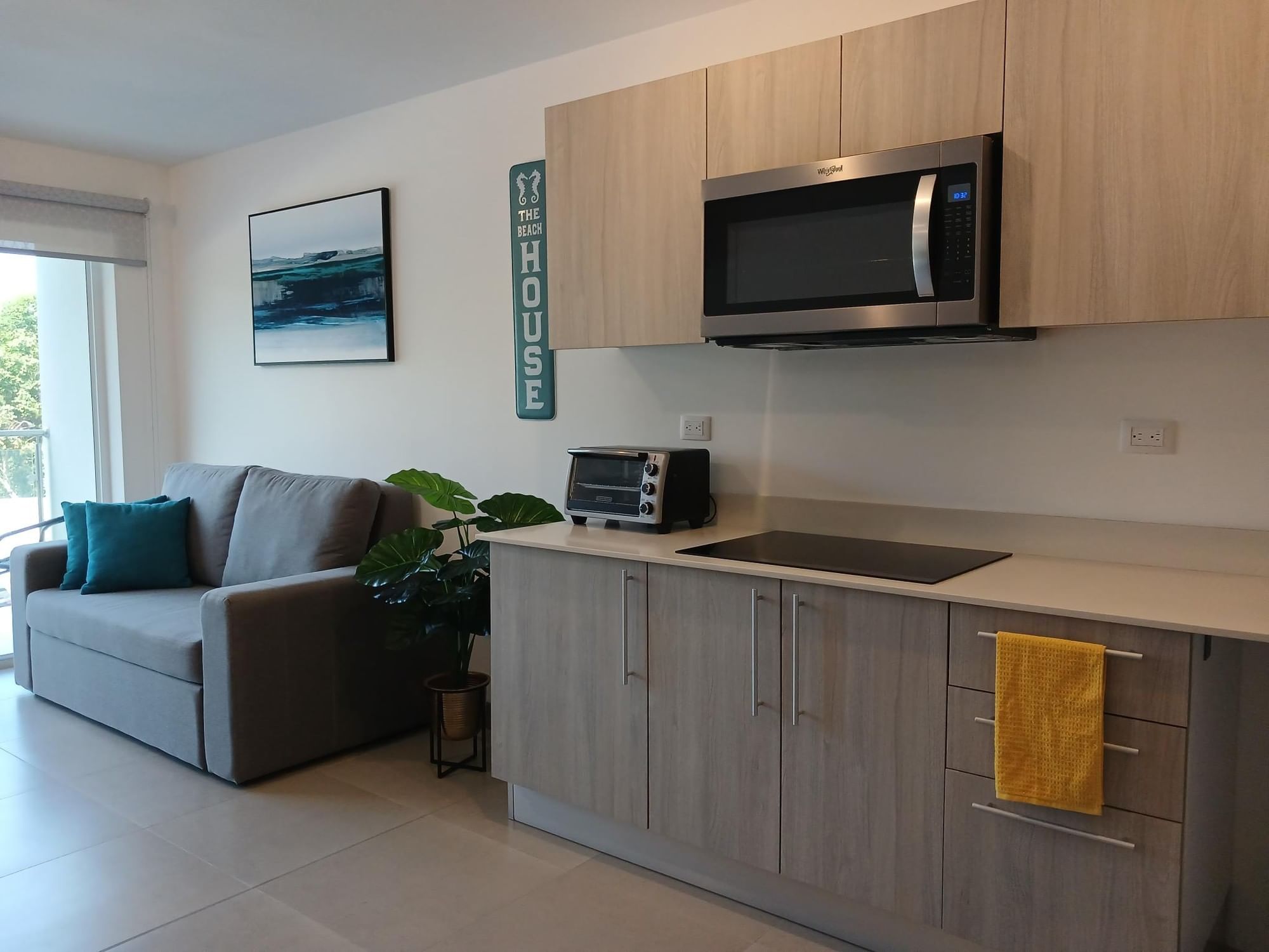 Este moderno apartamento ofrece confort y comodidad, con una cocina bien equipada y acogedores espacios al aire libre, perfectos tanto para relajarse como para ser productivo.
